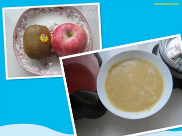 苹果1个,猕猴桃1个,凉开水100克。