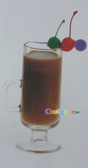 蜂蜜7ml,碎冰适量,红石榴汁4ml,加奶冰咖啡100ml,装饰:,鲜奶油,樱桃,柠檬,肉桂粉,柠檬皮屑