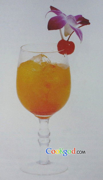 配方:黄苹果汁1盎司,龙眼蜜1/2盎司,柠檬汁1/4盎司,凤梨汁1/4盎司,草莓汁1/2盎司,红石榴汁1/4盎司,冰块1杯,开水3盎司,姜母茶粉1/2平匙,七喜汽水3盎司