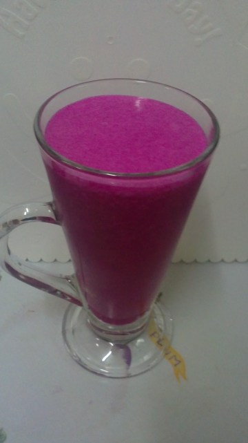 2.所有材料放入果汁机打匀,滤渣,倒入杯中.