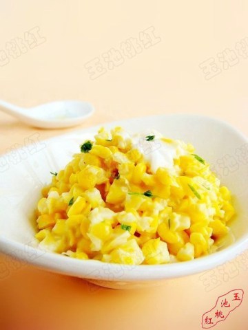 3、将甜玉米茸与蛋黄沙拉酱拌匀,需要立即食用。