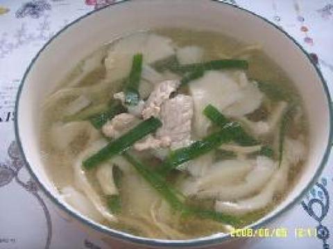 平菇2两,瘦肉3两,葱2颗,姜少许,盐,胡椒粉,油,水3碗,鸡精