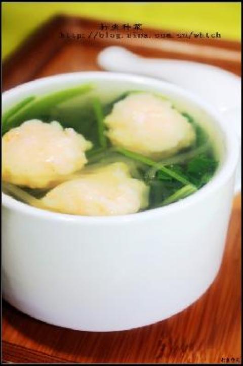 第一种:晚餐:鲜虾丸菠菜汤