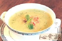 3.将作法2倒入果汁机中打成泥状,再倒回锅中加入调味料、鲜奶油以小火煮至滚沸后放凉。