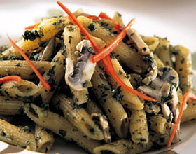 2.另将通心粉面煮熟装碗,加入作法1的蔬菜牛肉汤,食用时撒上起司粉、九层塔即可。
