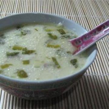 4、搅入姜末、鱼露和柠檬汁,撒上葱和香菜叶,趁热食。