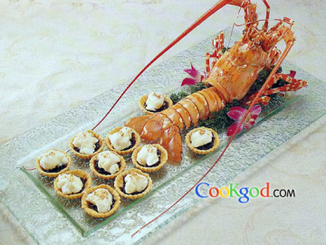 第一种:灌汤龙虾蛋菜谱,尼斯明虾黑宽面做法