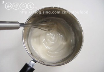 1.另取25克高筋面粉兑125克水调匀,小火慢慢加热,不断搅拌,熬成面糊状即可离火即为汤种,取72克备用