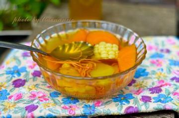土豆适量玉米适量胡萝卜适量虫草花适量洋葱适量干黄豆适量盐 适量糖 适量