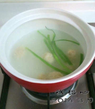 1、置砂锅放水,加适量食盐、白糖,把鱼丸煮熟。