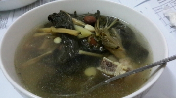 北杏,南杏,菜干,骨头,姜一起放锅里煲汤大概40-60分钟再放盐