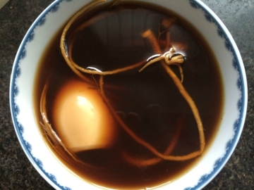 (l)、鸡蛋洗净熟,放入锅中,加适量清水、鸡血藤煮至蛋熟,捞出。