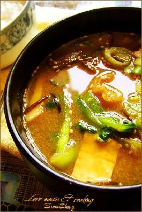 味增汤就是酱汤。其实味噌就是黄豆做出的酱,做出来的汤都是奶白偏黄色的。味道比较浓郁,也很鲜。像是放了很多鸡精。一般可以跟海鲜一起煮汤,味道非常鲜美。