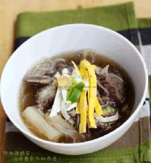 制法b:或者将用流动的水漂去血污的猪骨、乌鸡、牛肉氽水, 再和纯净水放入用飞利浦电磁炉加热的平底锅中(骨头在下、原料和水的比例是1:10)。 旺火烧沸,撇去汤面浮沫,放入葱姜料酒,加盖改小火慢煮2小时多, 至汤色浑白即成。