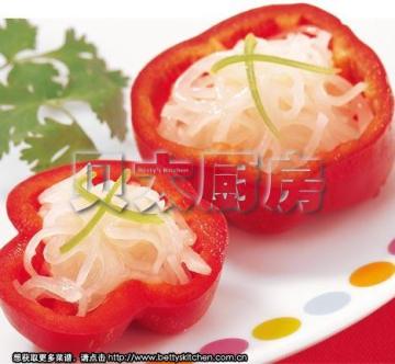 1、将萝卜切成丝,在开水中烫一下捞出,过凉水沥干待用。