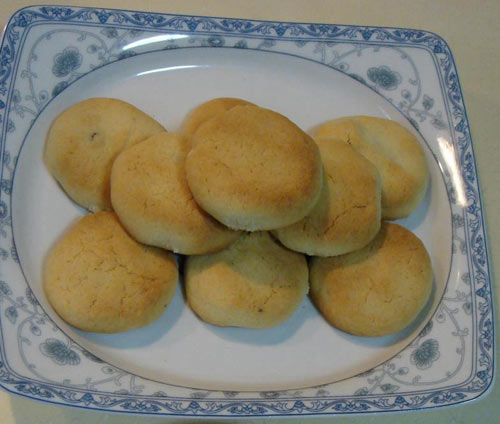 及以下步骤:把面粉和奶粉混合后过筛,加入打好的黄油糊里再放进提子,哈,叫顺口了实际就是葡萄干。在这里提醒大家一下,可别忘了事先把葡萄干用温水泡软了哈,或者再高级一些,用一些朗姆酒泡味道更妙! 用铲切拌匀就成了酥饼的面团。 烤盘薄薄刷层油,把面搓成球按扁了码放整齐就ok了。还可以在操作台上用擀面棍擀成5~8毫米厚的片儿,然后用模具刻压成带花边的造型,烤时在上面刷层蛋液再撒些砂糖粒。 放入预热好的烤箱里180度10-15分钟,视自己烤箱的实际情况来操作,但不超过200度就行,注意,最后几分钟要守在边上,观察一下,不要烤糊了呦! 噢!香喷喷的酥饼出炉喽! 把面粉和奶粉混合后过筛,加入打好的黄油糊里再放进提子,哈,叫顺口了实际就是葡萄干。在这里提醒大家一下,可别忘了事先把葡萄干用温水泡软了哈,或者再高级一些,用一些朗姆酒泡味道更妙! 用铲切拌匀就成了酥饼的面团。 烤盘薄薄刷层油,把面搓成球按扁了码放整齐就ok了。还可以在操作台上用擀面棍擀成5~8毫米厚的片儿,然后用模具刻压成带花边的造型,烤时在上面刷层蛋液再撒些砂糖粒。 放入预热好的烤箱里180度10-15分钟,视自己烤箱的实际情况来操作,但不超过200度就行,注意,最后几分钟要守在边上,观察一下,不要烤糊了呦! 噢!香喷喷的酥饼出炉喽!