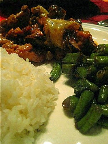 及以下步骤:鸡腿剁成小块,豆角掐去两头,切成两厘米长短的段,葱姜切丝,待用。 热锅热油,加入50克糖慢慢搅拌,待糖融化为深褐色后,将花椒粒,葱姜丝放入,爆香,等糖汁有点冒泡后,将剁好的鸡腿肉放入,炒糖色。 鸡腿剁成小块,豆角掐去两头,切成两厘米长短的段,葱姜切丝,待用。 热锅热油,加入50克糖慢慢搅拌,待糖融化为深褐色后,将花椒粒,葱姜丝放入,爆香,等糖汁有点冒泡后,将剁好的鸡腿肉放入,炒糖色。 鸡腿剁成小块,豆角掐去两头,切成两厘米长短的段,葱姜切丝,待用。 热锅热油,加入50克糖慢慢搅拌,待糖融化为深褐色后,将花椒粒,葱姜丝放入,爆香,等糖汁有点冒泡后,将剁好的鸡腿肉放入,炒糖色。 鸡腿剁成小块,豆角掐去两头,切成两厘米长短的段,葱姜切丝,待用。 热锅热油,加入50克糖慢慢搅拌,待糖融化为深褐色后,将花椒粒,葱姜丝放入,爆香,等糖汁有点冒泡后,将剁好的鸡腿肉放入,炒糖色。 放入一勺料酒,待鸡腿肉稍微变色后,放入八角一枚,酱油四勺,盐适量,入味即可。 炒豆角就是:葱姜丝爆香,豆角下锅,放入盐蚝油适量,炒熟即可。