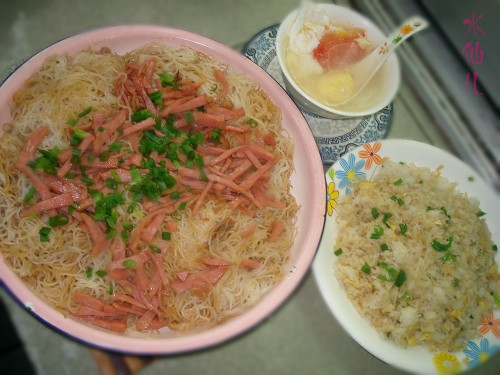 客家大排档风味的蒸米粉。用清蒸的做法来代替炒另有一番风味。