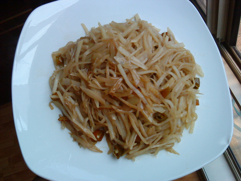 及以下步骤:山椒切段,我用的是一种叫hot pepper的辣椒,我觉得在国内用野山椒就可以,是一样的。 土豆切丝,个人认为细一些比较好 山椒切段,我用的是一种叫hot pepper的辣椒,我觉得在国内用野山椒就可以,是一样的。 土豆切丝,个人认为细一些比较好 山椒切段,我用的是一种叫hot pepper的辣椒,我觉得在国内用野山椒就可以,是一样的。 土豆切丝,个人认为细一些比较好 山椒切段,我用的是一种叫hot pepper的辣椒,我觉得在国内用野山椒就可以,是一样的。 热锅凉油,将山椒段炒香。 下入土豆丝,爆炒。 最后用所有的调味品调制的汁来调味。