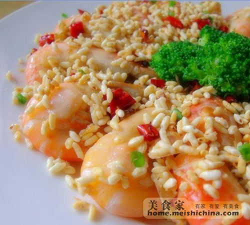 及以下步骤:西兰花焯水后,摆盘即可。 特写,虾很嫩,香,米很脆酥。 成品图全景,作为年夜菜还是不错的。 虾拍上淀粉过油炸变色即可。 锅里不放油,下香米小火炒微黄。(不要炒老了,微黄即可,后面炒虾的步骤结束就是金黄了) 放入红辣椒末,葱末。 倒入大虾炒匀即可。不用放作料,吃的就是鲜香。 西兰花焯水后,摆盘即可。 特写,虾很嫩,香,米很脆酥。 成品图全景,作为年夜菜还是不错的。
