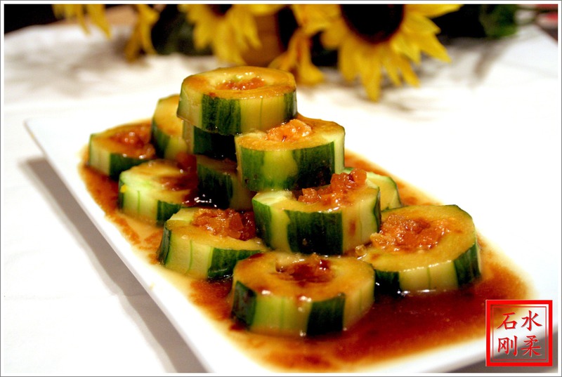 黄瓜是最家常的蔬菜,一般人都用它素炒,我仔细琢磨来试了几道菜,它原来可以清爽得这么美味,像个已过三十的主妇,拥有那般阅历了,虽然日子很平凡,但却透着淡淡地素雅。如果你用它参加聚会或接待客人,在大鱼大肉之后,客人一定喜欢它们。 这道菜很上镜,你可别错过,用蒸的做法,很特别,很健康,也很入味。