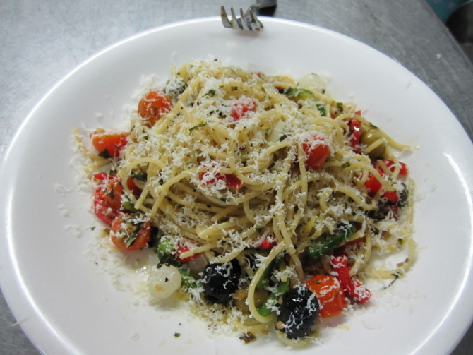 及以下步骤:平底锅里放3茶匙橄榄油,洋葱粒,翻炒,洋葱变金黄色,放黑橄榄 珍珠洋葱,灯笼椒,cherry tomato,basil sauce,basil leaves,蒜头翻炒,炒出香味后加盐fresh black pepper,放面拌炒均匀。 取一个锅放水加两茶匙橄榄油,水烧开后放面煮8分钟后捞起,放盐frsh black pepper拌匀。 平底锅里放3茶匙橄榄油,洋葱粒,翻炒,洋葱变金黄色,放黑橄榄 珍珠洋葱,灯笼椒,cherry tomato,basil sauce,basil leaves,蒜头翻炒,炒出香味后加盐fresh black pepper,放面拌炒均匀。 取一个锅放水加两茶匙橄榄油,水烧开后放面煮8分钟后捞起,放盐frsh black pepper拌匀。 平底锅里放3茶匙橄榄油,洋葱粒,翻炒,洋葱变金黄色,放黑橄榄 珍珠洋葱,灯笼椒,cherry tomato,basil sauce,basil leaves,蒜头翻炒,炒出香味后加盐fresh black pepper,放面拌炒均匀。 取一个锅放水加两茶匙橄榄油,水烧开后放面煮8分钟后捞起,放盐frsh black pepper拌匀。 平底锅里放3茶匙橄榄油,洋葱粒,翻炒,洋葱变金黄色,放黑橄榄 珍珠洋葱,灯笼椒,cherry tomato,basil sauce,basil leaves,蒜头翻炒,炒出香味后加盐fresh black pepper,放面拌炒均匀。 取一个锅放水加两茶匙橄榄油,水烧开后放面煮8分钟后捞起,放盐frsh black pepper拌匀。 平底锅里放3茶匙橄榄油,洋葱粒,翻炒,洋葱变金黄色,放黑橄榄 珍珠洋葱,灯笼椒,cherry tomato,basil sauce,basil leaves,蒜头翻炒,炒出香味后加盐fresh black pepper,放面拌炒均匀。 面拌均匀后装盘,擦上cheese。