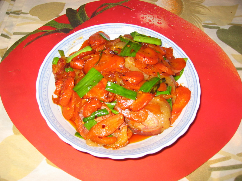 秘籍:郫县豆瓣是主角,所以放少量盐即可;蒜苗或蒜是必须放的,胡罗卜就特服大蒜;胡罗卜要煮熟,否则不容易炒熟,半生的时候味道不好的。
