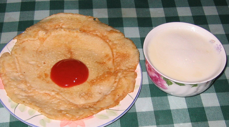 及以下步骤:饼铖放油,油至6成热倒入面糊糊,转动饼铖、借助锅铲使面糊均匀。 裹上番茄酱、蜂蜜、芝士、炼乳都好吃。 饼铖放油,油至6成热倒入面糊糊,转动饼铖、借助锅铲使面糊均匀。 裹上番茄酱、蜂蜜、芝士、炼乳都好吃。 面粉+牛奶+鸡蛋1个调和至较稀状态(面糊糊倒入饼铖后,倾斜饼铖可使面糊流动)。 饼铖放油,油至6成热倒入面糊糊,转动饼铖、借助锅铲使面糊均匀。 小火煎至饼成黄色后,铲出来,锅中放入黄油,继续煎饼的另一面。 第二面发黄后可点少许水,加盖焖一会,单面、双面焖都可以,使摊饼软化。 盛盘后,在饼的核心处加些番茄酱。 裹上番茄酱、蜂蜜、芝士、炼乳都好吃。