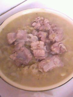 5、这个是高压锅压好的排骨,比较烂,主要是有高汤。呵呵,有了这个汤酸菜才能好吃,压排骨时候多放点汤。因为这个菜主要是喝汤,排骨不用多放。