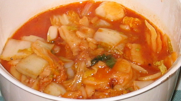 秘籍:年糕片、韩国辣白菜均可在大超市购买,一定将辣白菜的汤汁一并用上,否则颜色不佳,味道也不足。