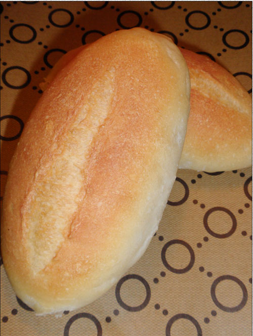 及以下步骤:松驰好的面团,卷成橄榄型,放至烤盘,放至温暖处,进行最后发酵。 最后发酵好的面团,用刀子在表面划一刀,表面喷水,放入已预热的烤箱,200度25分钟,中间可再喷水一次。 酵母融于温水中,静置5分钟。 所有材料混合,用min档混合成团。 用1档和2档交替搅打,直到扩展阶段。 搅打好的面团,放入盆内,盖上保鲜膜,放至温暖处,进行基础发酵。 发至2倍后,把面团翻面继续发酵30分钟。 发酵好后,排气,分割成60克/个的面团,滚圆,松驰15分钟。 松驰好的面团,卷成橄榄型,放至烤盘,放至温暖处,进行最后发酵。 最后发酵好的面团,用刀子在表面划一刀,表面喷水,放入已预热的烤箱,200度25分钟,中间可再喷水一次。