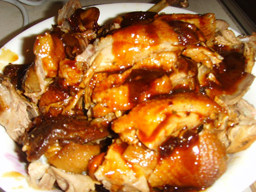 7、待鹅稍凉后斩件上碟,淋上汁就行了。(凉了可以用微波炉加热一分钟就行了)