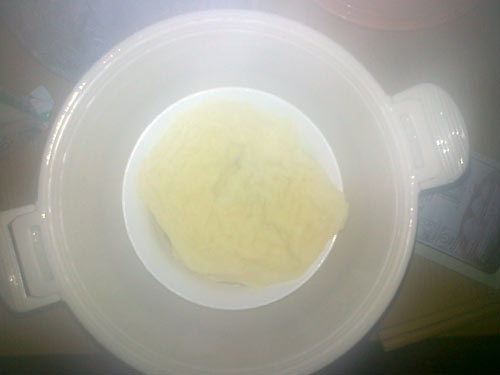 5、发酵完毕后,将桶直接放入微波炉中加热,用90%的火力,加热5-6分钟。