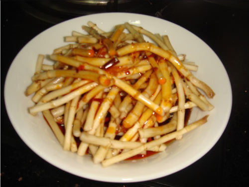 一道特开胃的菜,喜欢甜味的可以多加点糖。扎儿根从云南带回来,应是人工种植的。