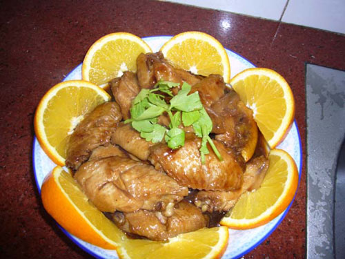 我家宝贝也是出了名的鸡翼粉丝。所以饭桌上当然少不了鸡翼,什么豉油王鸡翼,可乐鸡翼,茄汁鸡翼。我都全出招了。凡事都要创新,这个时节酸酸甜甜的橙子到处可见。买回家除了当水果吃,还能用来做菜。看看我的自创菜式,橙汁鸡翼。美味让女儿总夸我是美女厨房。只要家里有客人,也是必做家常菜之一。呵呵。