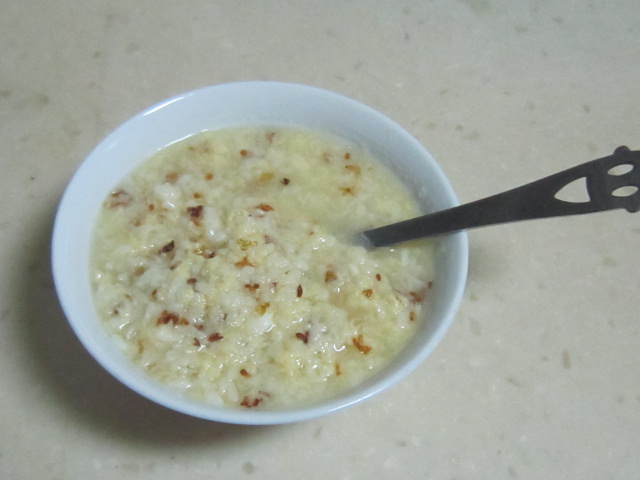 3、放入1小碗自制酒酿和1勺自制糖桂花(这是第二花),关火。