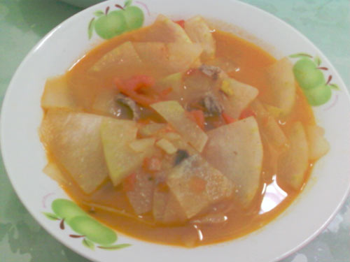 5、倒入汤锅煮10分钟,冬瓜已经很绵软了,放入少许鸡精即可。