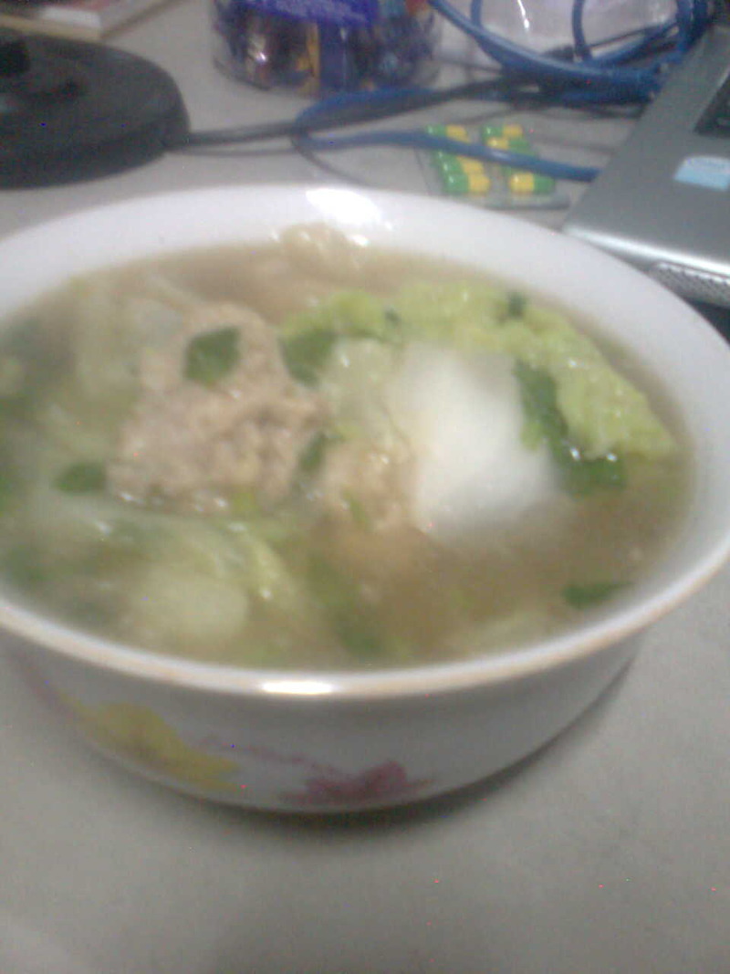 之前做过一次,因为没有图片,就没有发到菜谱上面,这次是之前版本的升级~看起来好像淡淡的,吃个丸子,再喝口汤。。。。嗯。。。。吃的就是这个鲜劲儿~哈哈 之所以叫做懒人菜,是因为呢,这道汤里,既有肉质的鲜美,又有白菜的爽口,营养均衡且原料简单,非常容易着手,有了这道汤,加个烧饼就可以华丽丽的开餐了。。。哈哈~实在是懒人们的不二之选! 推荐,推荐!