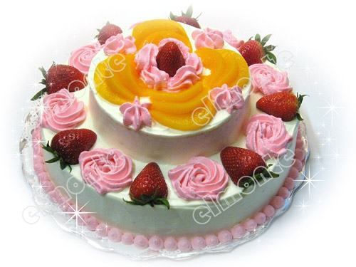 及以下步骤:倒入10寸和6寸的活底模里,用力震几下,震出大气泡。 放入预热了320f/160c度烤箱,烤1个小时。(各烤箱的温度有所差异,时间根据需要做调整), 取出倒扣放凉,就可以脱模了。(6寸的我在45分钟的时候就拿出来了)。 蛋糕用面包刀片成2片. 鲜奶油加糖打发至9分发,有明显纹路,但还可以缓慢流动。 取一蛋糕片,薄薄抹一层奶油,撒上草莓丁和黄桃丁。 在水果上面再涂一层薄薄的奶油。 放上另一片蛋糕片,在蛋糕的中央抹一点奶油,上一片6寸的蛋糕片,上面再抹上奶油,撒上水果丁。 盖上另一片6寸的蛋糕片。 倒入奶油抹平,用两把大菜刀把蛋糕移至蛋糕托板上。 装入裱花袋,在蛋糕上挤点花纹,放上水果装饰即可。