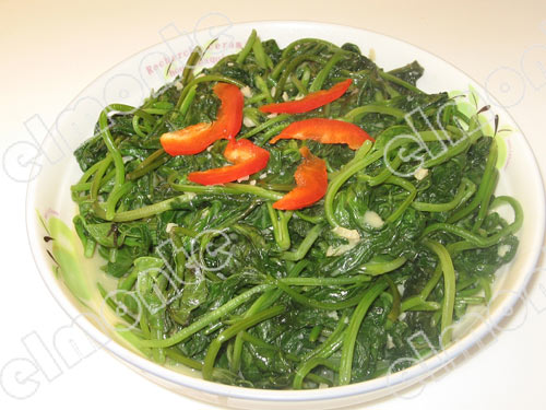 2. 番薯叶可以先用水烫一下,去其涩味。