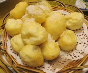 3、在加入面粉和淀粉,把它们搅拌均匀,炒勺上火加入色拉油,等油温到四成热的时候,把打好的蛋清内放一个豆沙馅,使蛋清裹住豆沙馅,用手把它挤成乒乓球大小,下入油锅内,等它膨胀是捞出,造此方法把剩余的做出来,等全部完成的时候,在把它们从新放入油锅内复炸,炸到蛋清成淡黄色时捞出装盘,在把白糖撒在炸好的蛋清上即可食用。