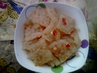 4、放一勺在猪皮冻上。