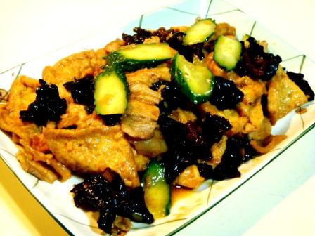 姜(10克) / 酱油(10克) / 香油(少许) / 水发木耳(60克) / 大葱(20克) / 黄瓜(50克) / 鸡粉(2克) / 白胡椒粉(少许) / 花雕酒(15克) / 烹调油(适量)