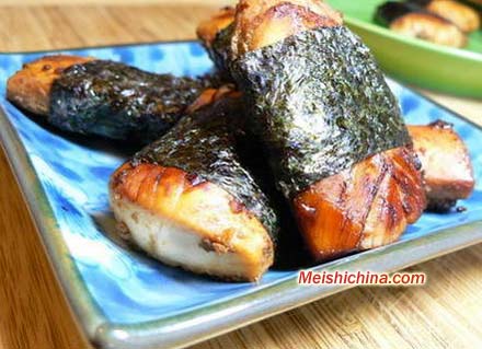 及以下步骤:鸡胸肉前一天晚上,用酱油,料酒,糖,姜末腌上,放入冰箱过夜。 腌好后的鸡肉切成大约拇指长的小段,摆在锅里我没放油,因为俺要减肥。 鸡胸肉前一天晚上,用酱油,料酒,糖,姜末腌上,放入冰箱过夜。 腌好后的鸡肉切成大约拇指长的小段,摆在锅里我没放油,因为俺要减肥。 鸡胸肉前一天晚上,用酱油,料酒,糖,姜末腌上,放入冰箱过夜。 腌好后的鸡肉切成大约拇指长的小段,摆在锅里我没放油,因为俺要减肥。 鸡胸肉前一天晚上,用酱油,料酒,糖,姜末腌上,放入冰箱过夜。 腌好后的鸡肉切成大约拇指长的小段,摆在锅里我没放油,因为俺要减肥。 热锅,中火,煎至两面黄的时候,倒入腌肉的酱汁,保持中火,等煎熟的时候,如果锅里的汁儿还比较多的话,大火收一下,这样鸡肉的颜色会比较好看。取出,同时把海苔剪成长条。 最后用海苔卷上鸡肉就ok了,很简单吧,但要热着吃,冷掉的话就不好吃了。鸡肉就太硬了哦。