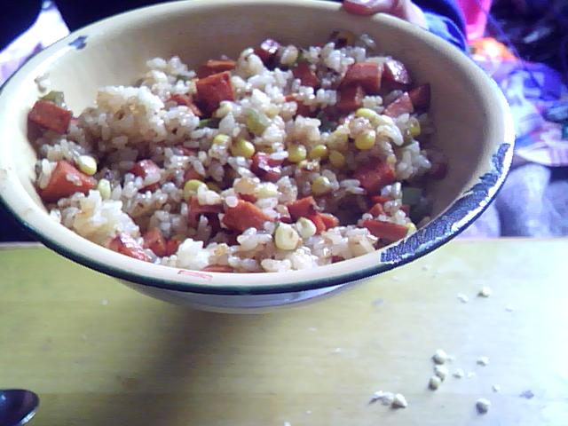 米饭(一大碗) / 玉米(一根) / 火腿肠(大的)(一根)