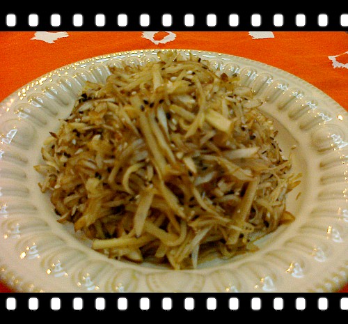 7、吃的时候,把洋姜切成细丝,加点熟芝麻,再淋点酱油、醋和香油,很下饭!^_^
