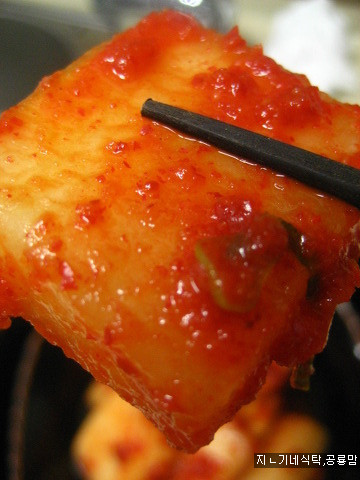 及以下步骤:最后,开饭喽!!! 搅拌机内放入:洋葱100g(1/2个左右),梨1角,大蒜6个,生姜2块,鲜虾露2勺、雨露1.5勺t,白糖1/2勺,晾凉的浆糊,打成糊状。 大葱2棵,切成花。 萝卜2kg((大的2个,一般大的3个)切成,长5cm、厚度7-8mm的小块 在腌制萝卜的时间里,用1/2杯凉水充分稀释米粉、江米粉、面粉各2小勺。 搅拌机内放入:洋葱100g(1/2个左右),梨1角,大蒜6个,生姜2块,鲜虾露2勺、雨露1.5勺t,白糖1/2勺,晾凉的浆糊,打成糊状。 大葱2棵,切成花。 在3和4内放入,颜色鲜艳的辣椒粉(适量,根据个人口味)。 把5搅拌均匀后,放入腌制好,淋干水分的萝卜块,搅拌均匀。取一密封容器,把拌到的萝卜块码好。 最后,开饭喽!!!