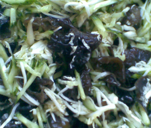 及以下步骤:将木耳泡发,放在盘中备用。 将黄瓜和白菜芯切丝。 将木耳泡发,放在盘中备用。 将黄瓜和白菜芯切丝。 将木耳泡发,放在盘中备用。 将黄瓜和白菜芯切丝。 将木耳泡发,放在盘中备用。 将黄瓜和白菜芯切丝。 把大蒜捣成泥。 把木耳.黄瓜.白菜芯和大蒜放在盆中加入盐味精蚝油芥茉油,搅拌均匀就可以了。