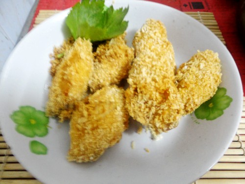 及以下步骤:.把鸡翅洗干净,加入盐,五香粉腌制。 .把鸡翅放入面粉中打滚。 .把鸡翅洗干净,加入盐,五香粉腌制。 .把鸡翅放入面粉中打滚。 .把鸡翅洗干净,加入盐,五香粉腌制。 .把鸡翅放入面粉中打滚。 再把鸡翅放入蛋液里。 再放到面包糠里滚上一圈。 把油烧热,把鸡翅一个放去炸,火不能太大,中火慢炸,里面才会熟透。 炸到金黄色就可以啦,捞起来颜色会深一点的。