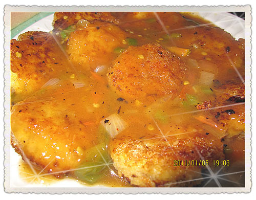 及以下步骤:把弄好的豆腐泥捏成小圆球在面包糠里滚滚沾满面包糠,然后稍微压扁一点。 锅中用少许油,将沾有面包糠的豆腐饼煎至两面金黄色。 图8是试着煎的,感觉还不错。这个就是所有的,一共有11个呢~~~。 接下来就是制作番茄酱了,西红柿、青椒、洋葱全部切丁。(青椒、洋葱不要也可以,主要是好看点)。 锅中都入少许油,将切好的菜丁倒入翻炒,加盐、耗油、酱油、热水煮开,用淀粉勾芡。 将做好的番茄酱一点点浇在煎好的豆腐汉堡上,就大功告成了~~很简单,也很方便,最主要好吃健康 图8是试着煎的,感觉还不错。这个就是所有的,一共有11个呢~~~。 接下来就是制作番茄酱了,西红柿、青椒、洋葱全部切丁。(青椒、洋葱不要也可以,主要是好看点)。 锅中都入少许油,将切好的菜丁倒入翻炒,加盐、耗油、酱油、热水煮开,用淀粉勾芡。 将做好的番茄酱一点点浇在煎好的豆腐汉堡上,就大功告成了~~很简单,也很方便,最主要好吃健康